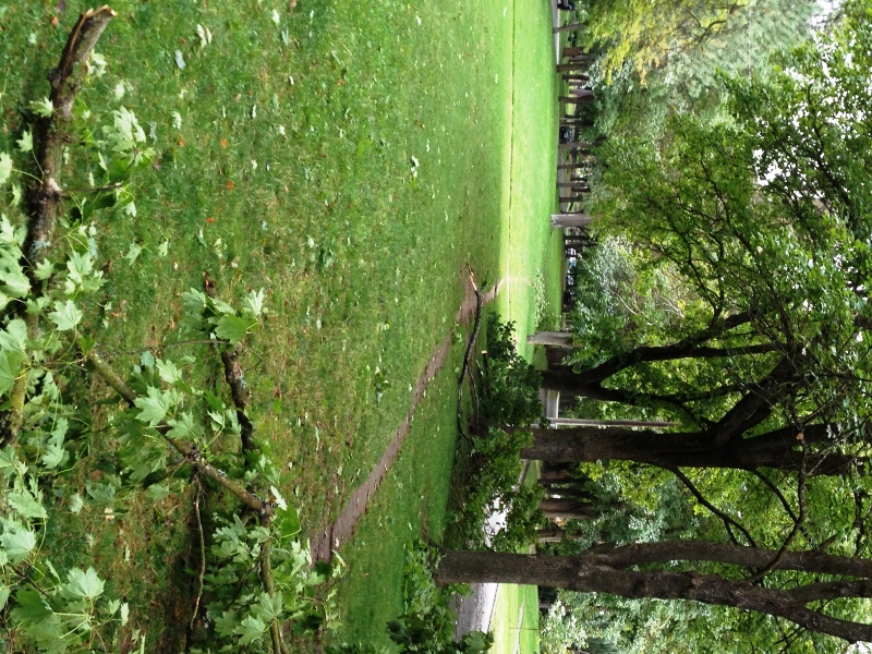 With the exception of a whole heck of a lot of pine needles, twigs and leaves not much was disturbed until I neared Manito Park, about three-quarters of a mile away from my house.  As I walked down Manito Blvd, where there is a high concentration of trees, I spotted what turned out to be the biggest damage in my two-mile walk.