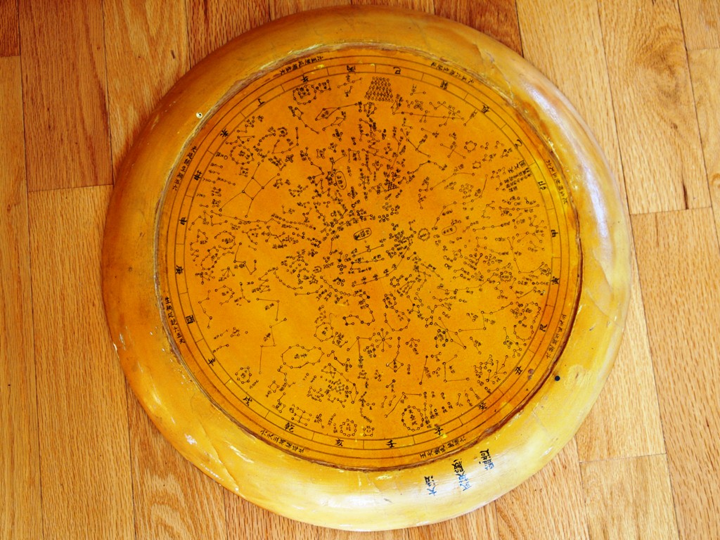 One of the items left by the previous owner was this chinese astrological calendar wheel. It was hanging on the wall in the living room. I love the piece, but do not want it as a wall hanging. I’m going to repurpose this piece and create a table by adding some sort of base. The piece is double-sided, but I like this side the best.