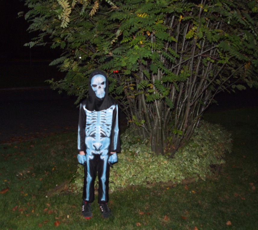 The skeleton costume is too small too, but that doesn’t stop my youngest son.