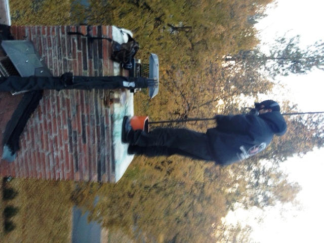Here’s our chimney sweep. No tie downs, we even provided our own for their use, no thanks. Yikes. I wish our chimney sweep was more Dick Van Dyke-like and sang Chim-chim-cher-ee chim-chim-cher-oo. It would have been truly fantastic if Mary Poppins herself dropped in as well. They didn’t even have soot on their faces. Nothing worse than a clean chimney sweep.